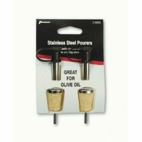 Liquor Bottle Pourer, 4-1/16" long, without collar, black cap, agglomerate natural cork, stainless steel spout (8004), 2-per card (premium carded)