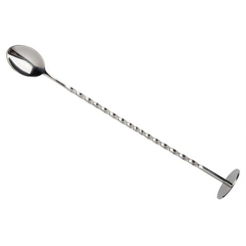 Bar Spoon, 10-3/4" long, twisted shaft, weighted muddler at end, stainless steel (premium carded)