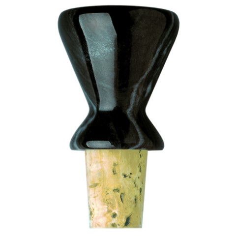 Wine Bottle Stopper, 1-5/8" dia. x 2-3/4" long., cone shape, flat top, tapered natural cork base, black marble (bulk pack)