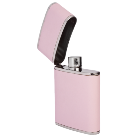 Deluxe Mini Pocket Flask, 2-1/2 oz., 2-5/8"W x 4-1/4"H, hinged cover, contour-shape, 18/8 stainless steel, bonded leather wrap (factory box)