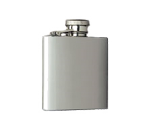 Pocket Flask, 2-1/2 oz., 2-3/4"W x 3/4"D x 3-1/4"H, captive-top, stainless steel (retail box)