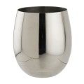 Wine Glass, 12 oz. rim full, 3-1/4" dia. x 3-1/2"H, stemless, 1 mm thick, 18/8 stainless steel, polished