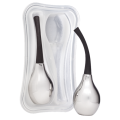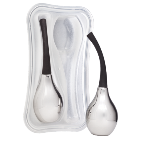 Cool-Bell™ Wine Glass Chiller Set, includes: (2) 1-7/8" dia. x 5-5/8"H chillers, with black silicon handle sleeves, one-piece construction, flat bottom, cooling gel interior, stainless steel exterior and (1) lidded freezer tray (retail box)