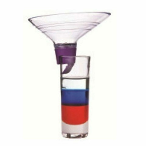 Layering Tool, 4-3/16" dia. x 2-1/2"H, funnel design, mounts on glass, 3-measuring lines, for layered drinks, plastic (retail box)