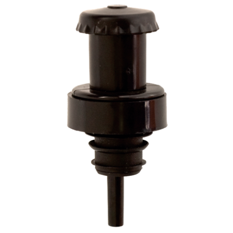 Pop-Up Bottle Pourer & Sealer, 1-1/2" dia. x 3"H, pull top, flexible neoprene insertion part, breath tube, ABS plastic, black (bulk pack)