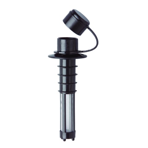 Wine Filter Bottle Pourer, self-contained, 1-1/2" dia., x 4-1/8"H, ultra fine screen mesh, BPA Free, plastic, black (premium carded)