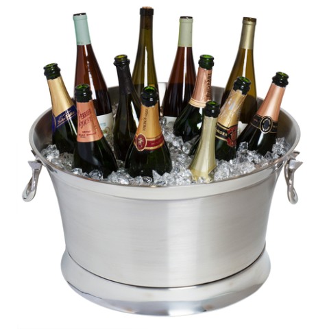 Cornucopia Wine/Champagne Bottle Cooler, 32 quarts, (12) bottle capacity, 20-5/8" dia. x 11-1/4"H, round, double handles, double wall, raised pedestal, stainless steel, high gloss finish on rim and base, brushed finish on body (factory box)