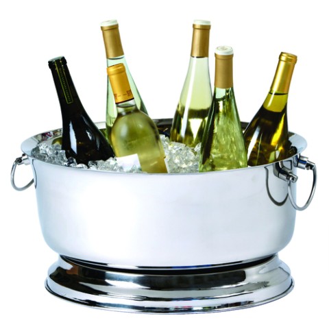Wine/Champagne Bottle Cooler, banquet size, 16 quarts, (8) bottle capacity, 18-3/4"W x 9"H, oval, double handles, double wall, footed base, stainless steel, polished finish (factory box)