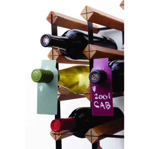 Wine Bottle Tags, two-sided, 1-3/4"W x 4"H, reusable, green side (white wine), burgundy side (red wine), with one-piece natural chalk (premium carded)