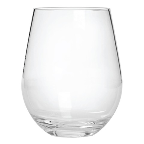 Wine Glass, 20 oz., 2-7/8" dia. x 4-3/4"H, round, stemless, semi-rigid, BPA free, acrylic, clear (bulk pack)