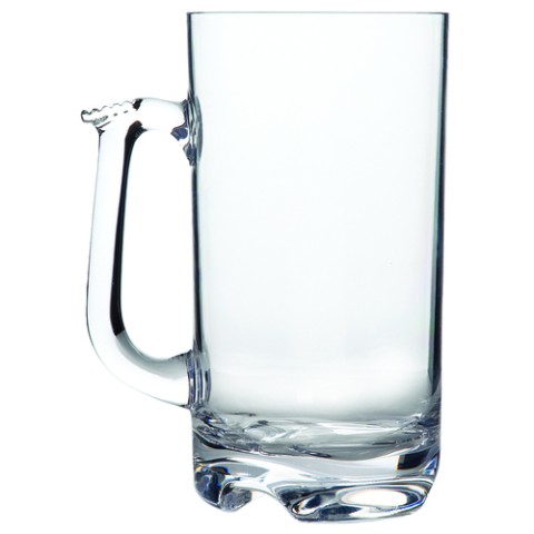 Beer Mug Glass, large, 32 oz., 3-7/8" dia. x 7-1/4"H, round, stemless, with handle, BPA free, acrylic, clear (bulk pack)