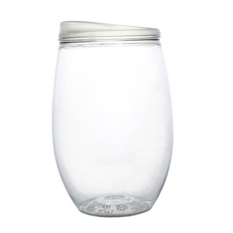 Wine Tumbler, 16 oz., 2-5/8” dia. x 4-5/8”H, stemless, lidded, PET plastic, BPA free, Made in USA