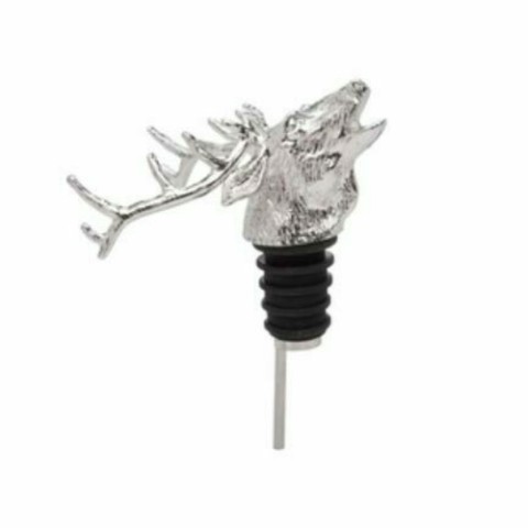 Heads-Up! Aerator Bottle Pourer, reindeer design, zinc alloy, nickel plated, silver (fits most bottles) (retail box)