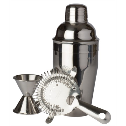 Bar Gift Set, includes: (1) 18 oz. three-piece cocktail shaker (8783), (1) 6" cocktail strainer (8015), (1) 1 oz. & 1-1/4 oz. double jigger (8010), stainless steel (factory box)