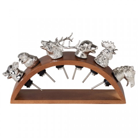 Bottle Pourer Display, 6- slots, 9" x 2" x 3-3/4"H, curved, wood (for Heads-Up Bottle Pourers) (bulk pack)