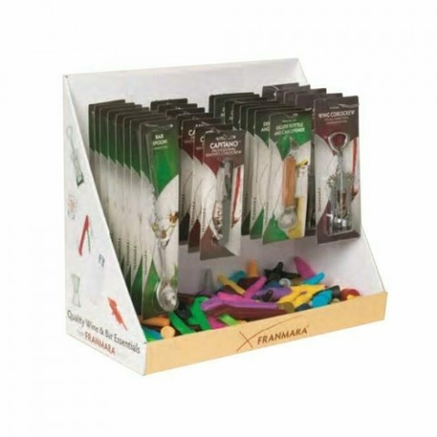 Display Rack, countertop, (4) peg, 18-3/4"W x 9-5/8"D x 16-3/4"H, Franmara graphics, foldable, recyclable, white background, cardboard (factory box)