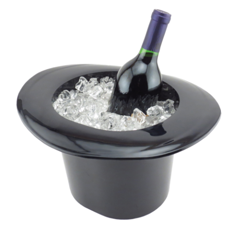 Wine/Champagne Bottle Cooler, 7-1/2" base dia., 13"W (across top) x 7-1/4"H, round, top hat shape, plastic, black (bulk pack)