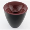 Pulltex Spittoon, two-piece, 7-5/8” dia. x 8-1/2”H, 4 mm thick, acrylic, burgundy split top, black base, Made in Spain