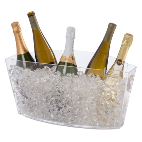Viking Wine/Champagne Bottle Cooler, long, 13 quarts, (5) bottle capacity, 19-1/4"W x 8-3/4"D x 9-1/4"H, oblong, rigid, hand holds on the side, scratch resistant, CET copolymer, clear, Made in Italy (bulk pack)