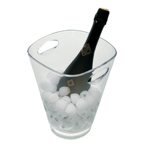 Ideal™ Wine/Champagne Bottle Cooler, long, 4-1/2 quarts, (1) bottle capacity, 4-1/2" base dia. x 10-3/8"H, round base, 8-1/4" x 8-1/4" square top, double handles, scratch resistant, CET copolymer, clear, Made in Italy (bulk pack)
