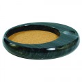 Sommelier's Wine Bottle Coaster, 6" dia. overall, 4" dia. offset well, black felt base, with natural cork mat, marble, black (factory box)