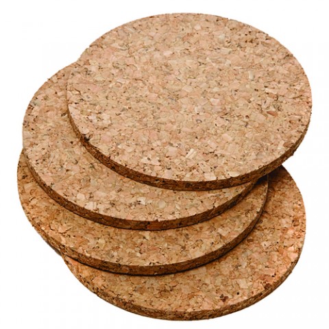 Coaster, 4" dia., 5mm thick, round, composite natural cork, Made in Portugal (bulk pack) (minimum order: 50)