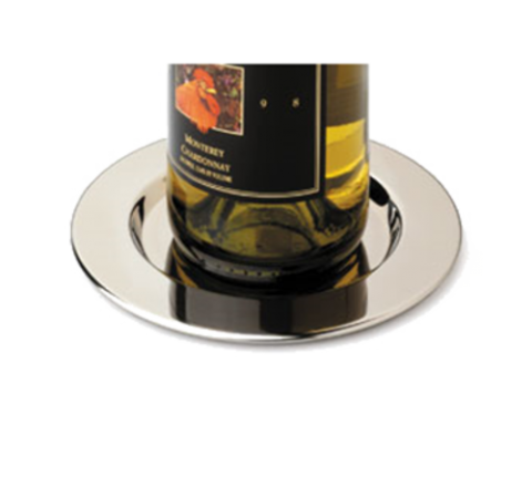 Pratique Wine Bottle Coaster Set, 6-1/8" dia. overall, 4" dia. well, polished stainless steel (4 each per set) (retail box)