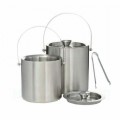 Jamboree Deluxe Ice Bucket Set, 2 liters, 7" dia. x 7-1/4"H, round, with handle, double wall, includes: 6-1/4" ice tongs, 18/10 stainless steel, brushed finish (retail box)