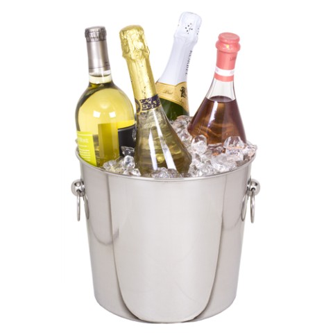Ideal™ Quattro Wine/Champagne Bottle Cooler, 8-3/4 quarts, (4) bottle capacity, 10" dia. x 8-3/4"H, round, double handles, stainless steel (bulk pack)