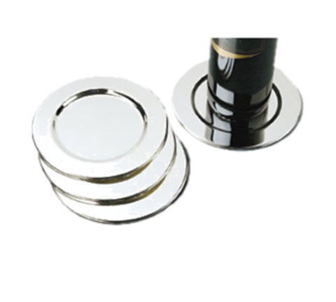 Pratique Wine Bottle Coaster Set, 6-1/8" dia. overall, round, 4" dia. well, silver plated (4 each per set) (retail box)