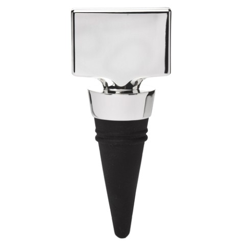 Wine Bottle Stopper, 1-1/2"W x 4-5/8"H, plaque top design, silicone base, silver plated (factory box)