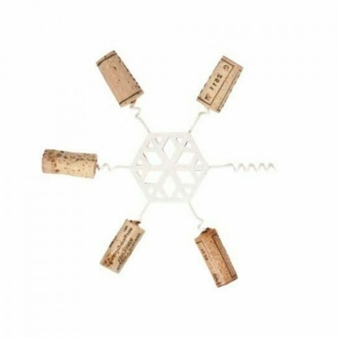 Snowflake Wine Cork Trivet, 6-3/8" dia., snowflake shape, (6) spirals, stainless steel, enamel finish, white (corks not included), Made in Portugal (retail box)