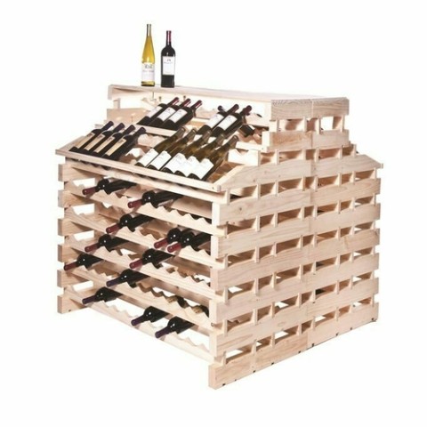 Modularack® Pro Waterfall Gondola Deluxe Wine/Champagne Rack, four bottle deep, (312) bottle capacity, 48"W x 48"D x 48"H, 9-tiers, rectangular, (2) 12" beveled top shelf butted together, radiata pine, natural, FSC Certified Timber (factory box)