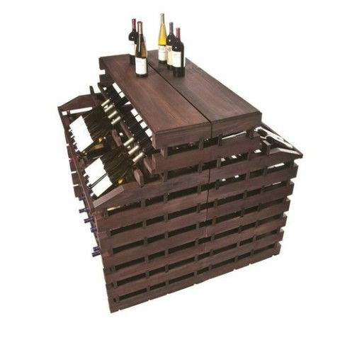Modularack® Pro Waterfall Gondola Deluxe Wine/Champagne Rack, four bottle deep, (360) bottle capacity, 48"W x 48"D x 55"H, 10-tiers, rectangular, (2) 12" beveled top shelf butted together, radiata pine, stained, FSC Certified Timber (factory box)