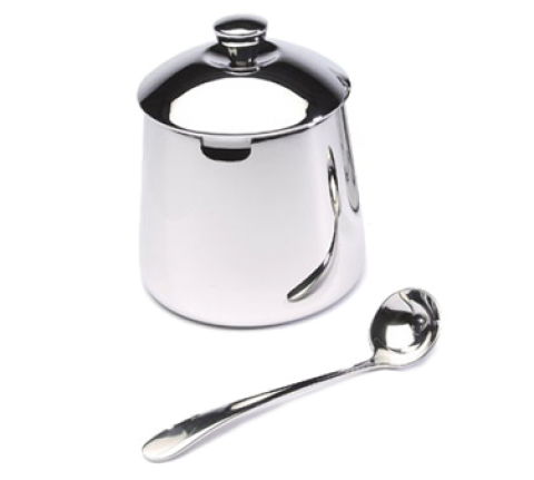 Sugar Bowl, 10 oz., 4" H, with lid, includes 5" spoon, dishwasher safe, 18/10 stainless steel, mirror finish