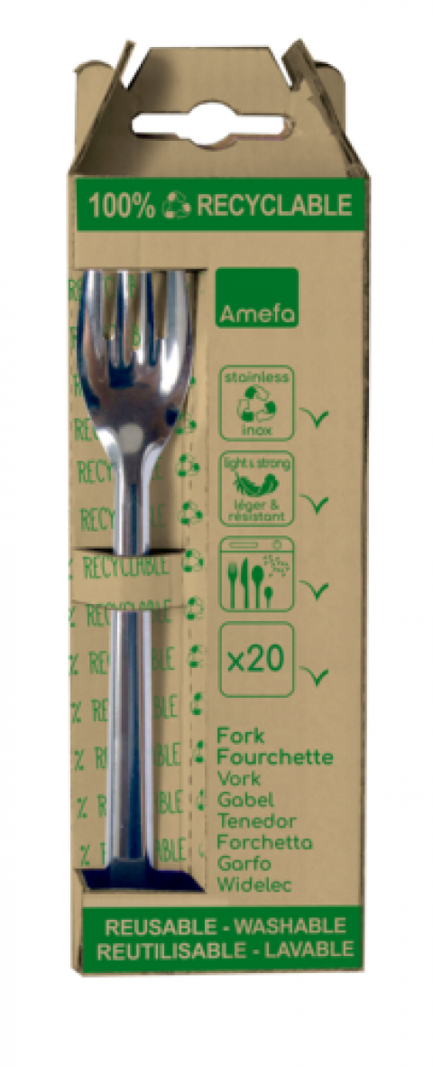 Fork, 6-1/2", 18/0 stainless steel, tumble finish, 0.5 thickness, re-usable, sustainable and 100% recyclable, 20 pcs per box, Leaves by Amefa (6 per boxes case)