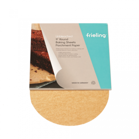 Parchment Paper/Pan Liners, unbleached 9" round baking sheets, double-sided silicone coating, reusable, 450°F, chlorine and acid free, non-toxic and eco-friendly, Free of PFAS, PFOS, PFOA, made in Germany, 50 sheets per box