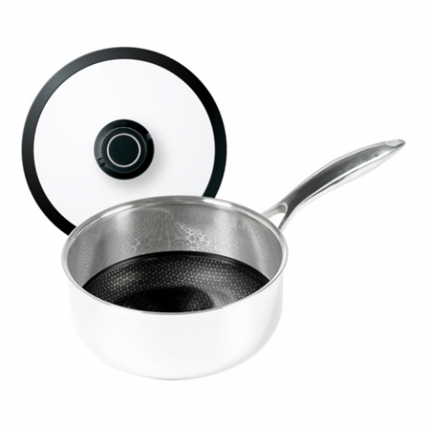 Black Cube™ Quick Release Saucepan, 8" dia., 2.5 qt., 3-ply stainless steel construction, PFOA free coating, induction ready, oven safe up to 500° F, ergonomically shaped handle, dishwasher safe