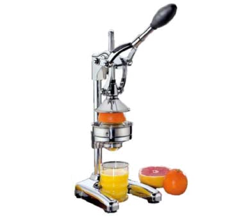 Manual Citrus Press, 8-1/2"L x 7"W x 17"H, rubberized handle, rubber feet for stability, removable parts are dishwasher safe, cast aluminum, funnel & extractor made of stainless steel, polished chrome, CILIO