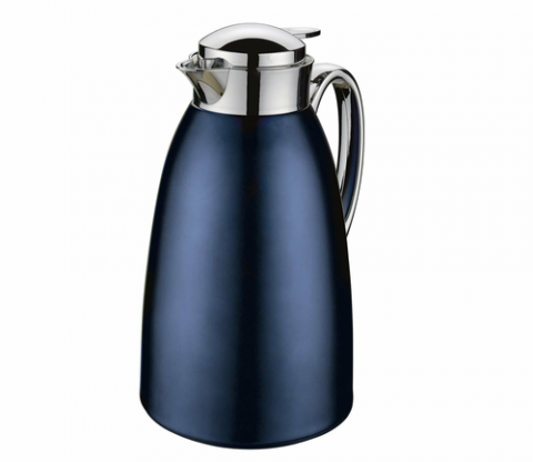 Cilio Insulated Server "Venezia", 34 fl. oz./1 liter, navy blue stainless body with tempered glass liner, screw-on cap with push-button pouring