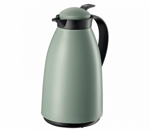 Cilio Insulated Server "Imola", 34 fl. oz./1 liter, matte mint green plastic body with tempered glass liner, screw-on cap with push-button pouring.