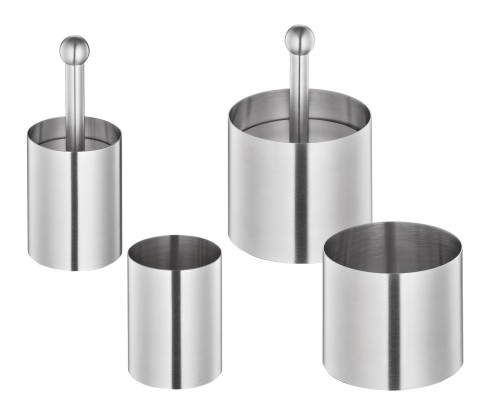 Forming Ring Set, 6-piece, includes: (2) 2" molds, (2) 3" molds, (1) 2" tamper, (1) 3" tamper, dishwasher safe, stainless steel, Küchenprofi