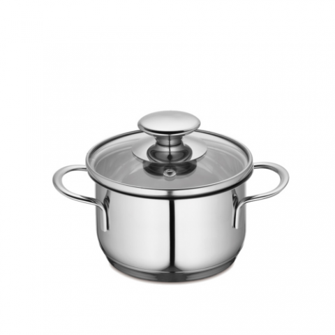 Mini Stockpot with Glass Lid, 4.75"W x 3.75"D x 4.75"H, 0.7 qt., 4.75 dia., 18/8 stainless steel bodies