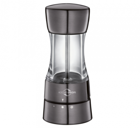 Pepper/Salt Mill, 5-1/2"H, round, ceramic grinder, acrylic, stainless steel, gunmetal gray, Frieling