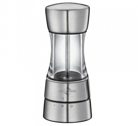 Pepper/Salt Mill, 5-1/2"H, round, ceramic grinder, acrylic, stainless steel, clear, Frieling