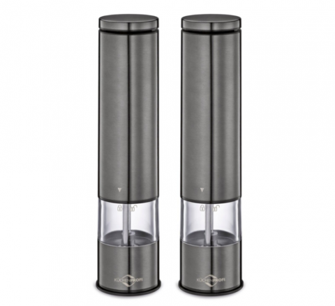 "Boston" Electric Salt and Pepper Mill, 2" dia. x 9"H, stainless steel, acrylic