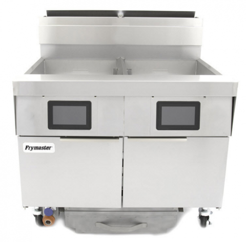 Frymaster® FilterQuick® fryer, gas, (2) 100 lb. oil capacity (each frypot), built-in automatic filtration, FQ4000 easyTouch® controller, electronic ignition, rack-type basket support, basket hanger, filter starter kit, 8 GPM pump, stainless steel front and sides, adjustable casters, 105,000 BTU (each frypot), CSA Star, CSA Flame, cCSAus, NSF