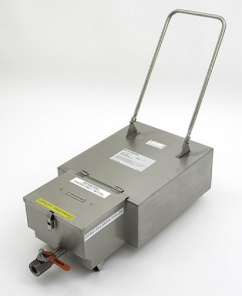 Frymaster® Cleaning Disposal Caddy, 13.14 gallons (49.74 liters) oil capacity, latching stainless steel lid, fold-down handle, drain valve, stainless steel pan, 2" low profile casters, 1" drain pipe & shut-off valve