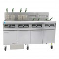 Frymaster® Fryer Battery, gas, hi-efficiency, (4) 50 lb. capacity each, built-in filtration, open pot design, automatic melt cycle, boil-out temp control, electronic ignition, center mounted RTD, 1° compensating temperature probe, includes: rack-type basket support, basket hanger & twin baskets, stainless steel frypots, doors & cabinet, casters, 320,000 BTU, CSA Star, CSA Flame, cCSAus, CE, NSF, ENERGY STAR®