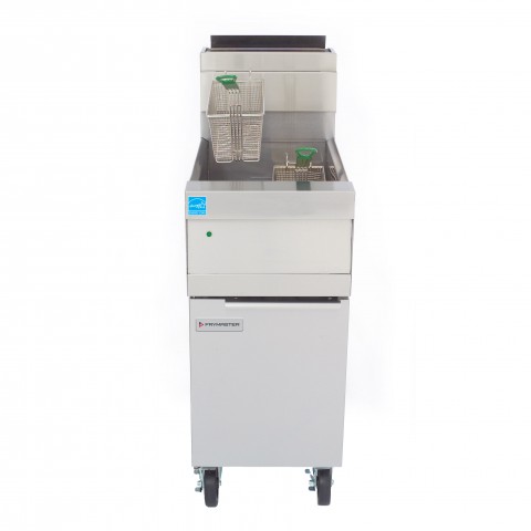 Frymaster® Decathlon HD Series Fryer, gas, floor model, 50 lb. capacity, tube-type design, automatic melt cycle, boil-out temperature control, electronic ignition, includes: rack-type basket support, basket hanger & twin baskets, stainless steel frypot, front, door & cabinet sides, legs, 100,000 BTU, CSA Star, CSA Flame, cCSAus, CE, NSF, ENERGY STAR®